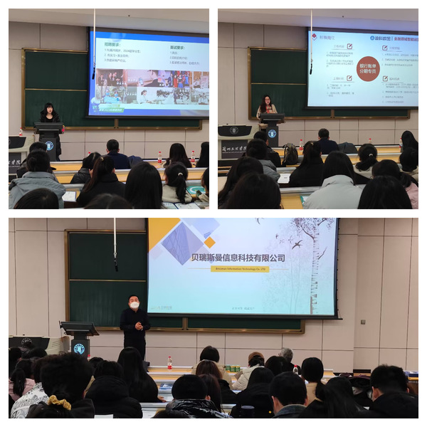 本次宣讲会邀请了上海链家房地产经纪有限公司、苏州贝瑞斯曼信息科技有限公司和西安迪科数金智能科技有限公司。三家公司的招聘负责人依次进行了招聘宣讲,从公司简介、办公环境、薪酬福利以及岗位需求四个方面为同学们做了详细介绍。 宣讲会结束后,有50余名毕业生向企业投递了个人简历,进行了初步的双向选泽。学院也将持续跟进,不断为毕业生推荐更多的企业,提供多元化的选择。 毕业实习是本科生人才培养的重要组成部分,以集中实习带动毕业生就业的“实习+就业”工作模式,是我院就业工作的重要抓手。学院领导班子高度重视毕业实习就业工作,加大访企拓岗的力度,构建深度的“校企合作”方式,认真挑选实习合作单位,为毕业生推荐专业相近、待遇优厚的实习就业岗位。 撰稿:崔誉钟 通讯员:汪莹 审核:张全红 审校:闫一丹 陈兵建 撰稿: