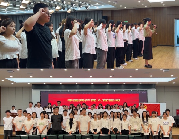 庄严的《国际歌》后,由工管系学生党支部书记领誓,预备党员面向党旗庄严宣誓,正式党员一同重温誓词。正式党员为新党员配戴党徽,新党员将更加明确身份、勇于担当、努力学习,为学校高质量发展做出自己的努力。 工管系学生党支部预备党员表示会时刻牢记誓言,努力成为有担当、有作为、有奉献精神的新时代青年。会计系学生党支部书记希望同志们把誓言转化为行动,为党的事业贡献自己的青春力量。