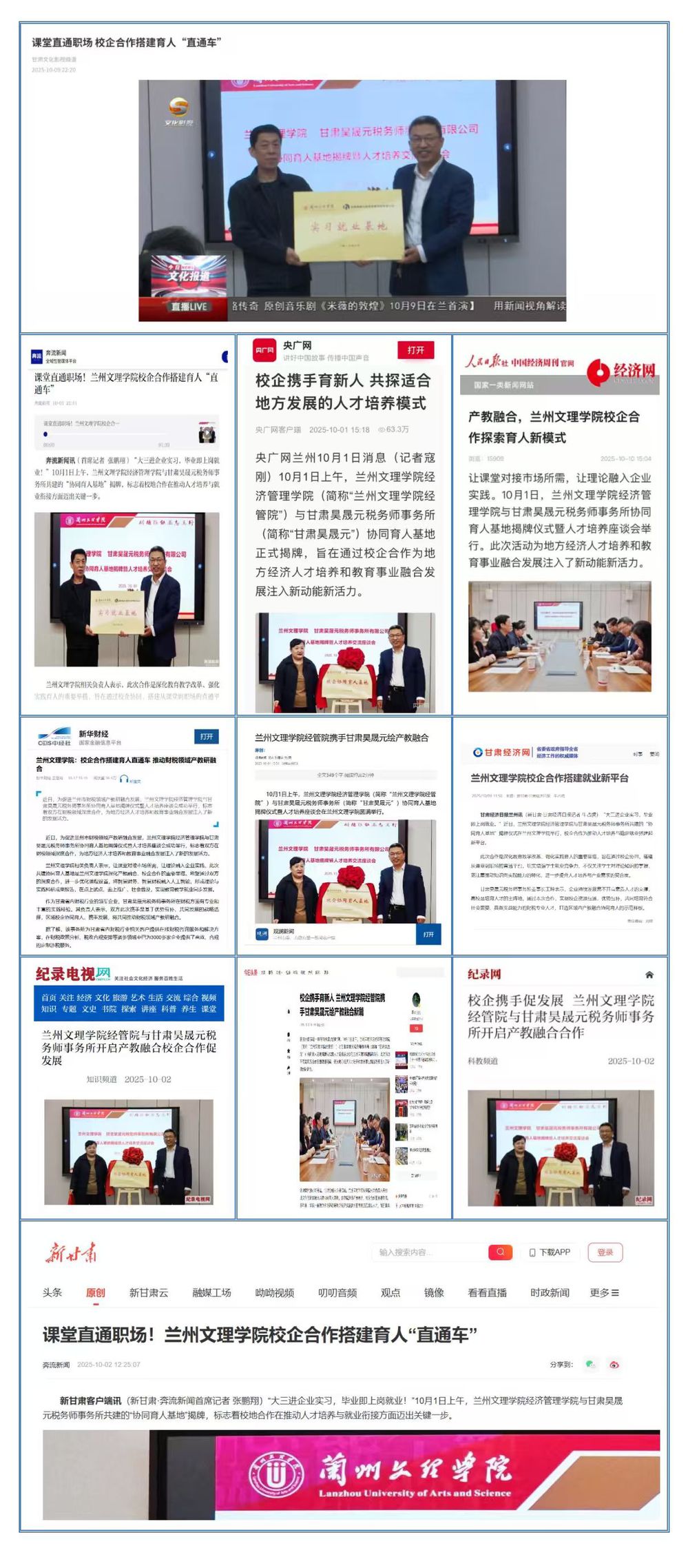 近日,yl6776永利集团与甘肃昊晟元税务师事务所协同育人基地举行挂牌仪式,该基地于6月建成,双方围绕“产教融合、协同育人”,共建实习实践与就业平台,探索“课堂直通职场”的人才培养模式,为地方经济发展输送复合型应用人才,相关活动获央地多家主流媒体报道。